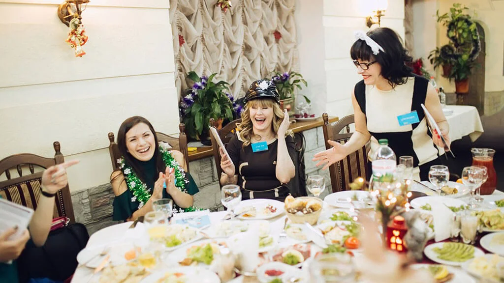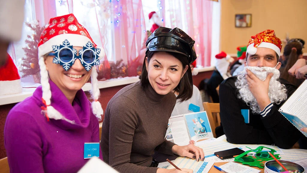 На Северном полюсе проходит съезд работников Нового года и Рождества. Здесь можно встретить не только Деда Мороза, Санта-Клауса и их финского собрата Йоулупукки, но и Снежную королеву или Снежного человека.